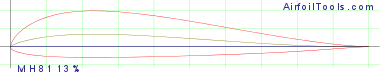 Martin Hepperle MH 81 for flying wings (hang glider) Max thickness 12.9% at 25.4% chord Max camber 3.3% at 25.4% chord Source UIUC Airfoil Coordinates Database