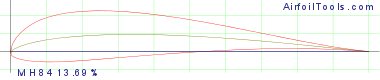 Martin Hepperle MH 84 for flying wings (hang glider) Max thickness 13.7% at 21.5% chord Max camber 4.1% at 36.6% chord Source UIUC Airfoil Coordinates Database